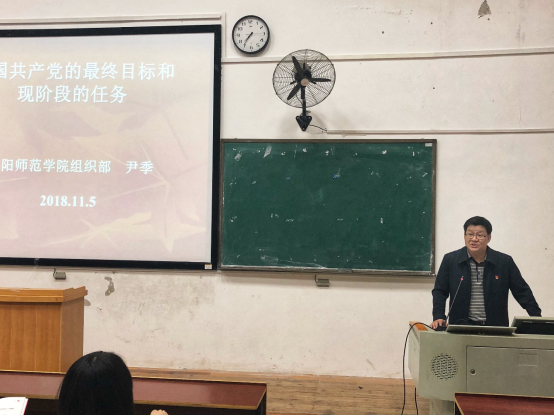 11月5日晚19:30,由物电分党校承办的第57期入党积极分子培训于我校外语楼北101召开,培训对象为PA电子、体育学院与物电学院16级、17级部分学生。特邀请PA电子校党委委员、组织部部长尹季作题为“中国共产党的最终目标和现阶段的任务”的讲座,传达党的奋斗目标和中国特色社会主义先进思想。