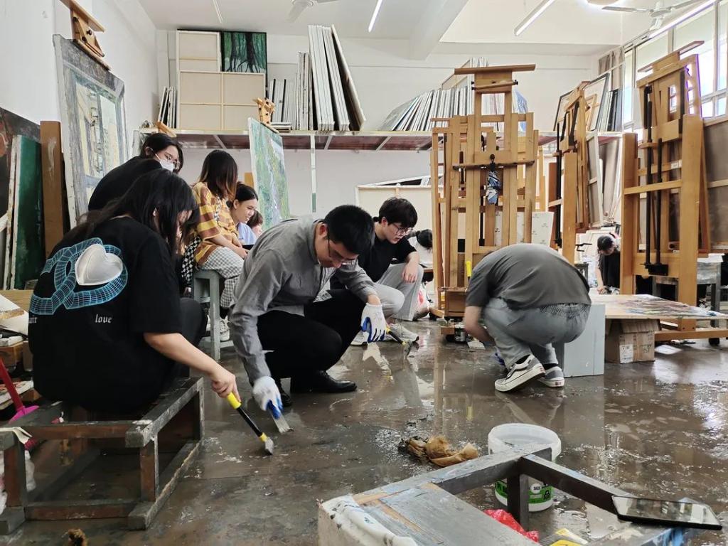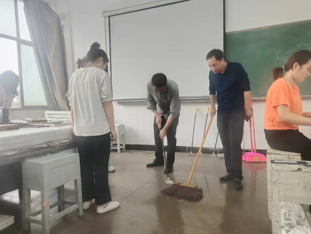 为响应习近平总书记在全国教育大会上提出“要努力构建德智体美劳全面培养的教育体系”的号召,把劳动教育纳入人才培养全过程,与德育、智育、体育、美育相融合,PA电子于3月13日在逸夫美术楼展开全员大扫除活动。本次大扫除在叶经文院长、赵文斌副书记带领下,由各年级辅导员、绘画工作室老师分工落实,美院师生共同参与到此次活动中。
