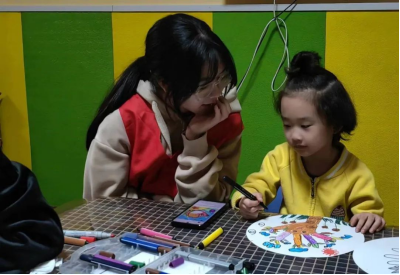 志愿者们在与小朋友的沟通过程中,鼓励孩子们开口说话,耐心陪伴指导孩子们画出自己的树苗,无声世界里的孩子同样值得美好的感官体验,志愿者们希望用自身的专业知识为孩子们营造出色彩斑斓的美术世界。