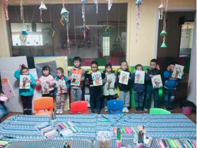 艺源欣支教团队在支教过程中充分发挥自身的美术专业知识,增进与小朋友之间的感情,激发孩子们的想象力,给他们带去快乐和温暖。同学们有耐心的教学和指导孩子们绘制自己想象的树苗,每个孩子都有了自己的作品。