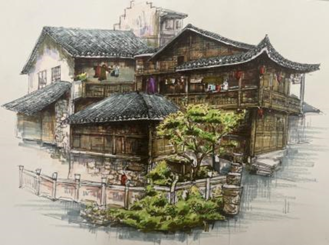 通过本次传统民居写生课程,我们考察了湘西民居及其原生态生活环境,分析了民居建筑的序列组织关系、尺度、体量、构造、比例等,加深了对传统民居的认识,并从中感受传统建筑和传统文化的魅力。通过场景色彩写生与创作,运用绘画语言来表现湘西传统民居之美,从中学会概括的手法去把握和控制画面,认识和发现色彩的空间美,为以后的专业学习打下较好的建筑色彩表现造型基础。