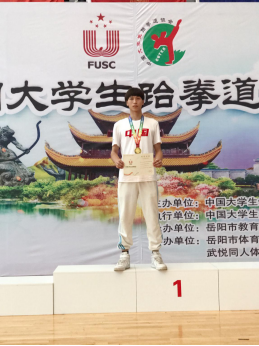 之所以取得这样的好成绩。他表示:“首先要感谢父母给予我的鼓励和大力支持,其次就是我的启蒙老师滕腾教练,没有他十多年的执教,我不会有如此过硬的比赛技术。还有我校跆拳道队主教练何彪老师,是他指导我在大学里继续让跆拳道技术得以发展,正是在他的强化训练和严格要求下,我才能拿到这个奖项,为学校争光。”