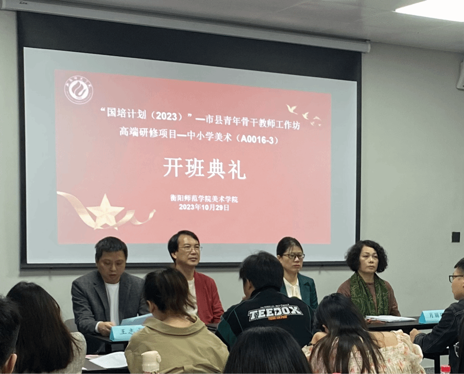 唐斯萍代表承办单位衡阳师院在开班仪式上致辞。她说,作为百年师范,PA电子一直重视高等教育与基础教育的对接,重视教师培训工作并对此培训提出三点建议:一是牢记教育的根本任务为立德树人;二是加强中小学美术教育的创新实践;三是提高自身内驱力,期待本项目在培养培训一体化方面做出特色,做出高水平。