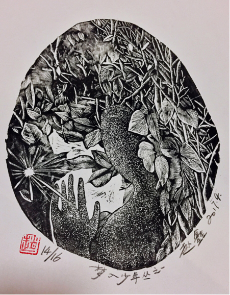 赵鑫入选作品《梦入少年丛之一》   木刻版画