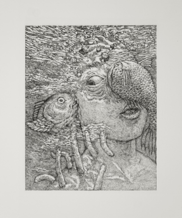 王维荣入选作品《我们之侧耳倾听2》    铜版画