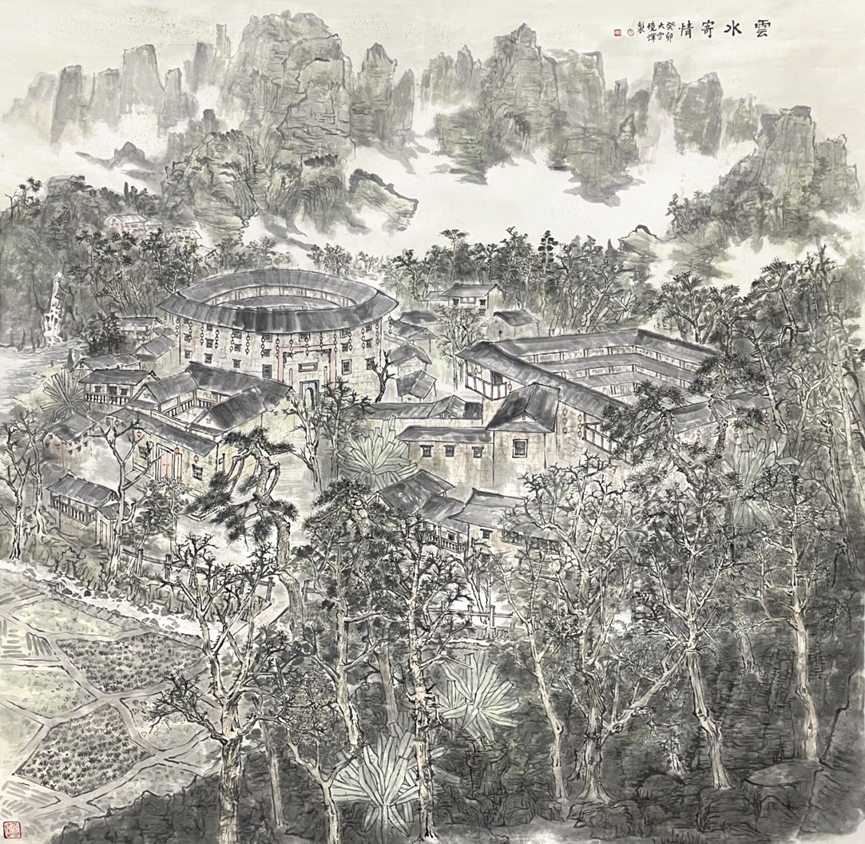 《家国永定》这幅作品既是作者对山水美景的感悟与赞美,也是自己情感的抒发与表达。并通过多元的艺术形式表达对伟大祖国、客家文化、山水美景的热爱之情,充分展现了衡阳师范PA电子师生的艺术智慧、艺术品格和艺术创新的精神风貌。